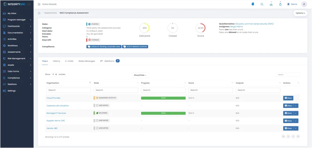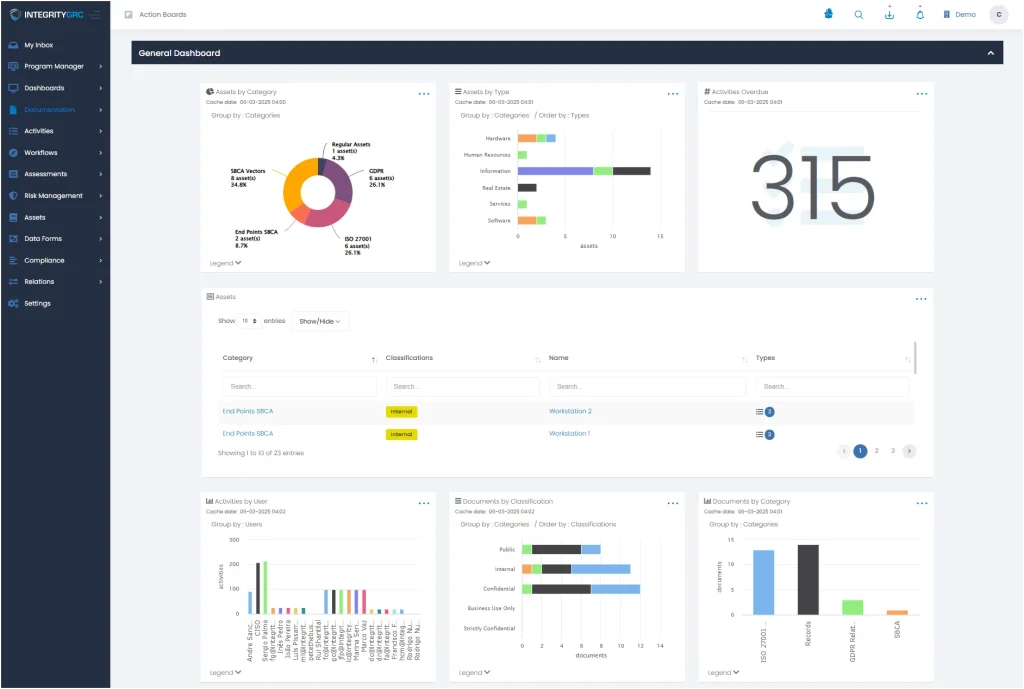 تساعد IntegrityGRC المؤسسات على إدارة متطلبات الامتثال للمعايير واللوائح المختلفة مثل ISO وPCI DSS وGDPR من خلال إطار موحّد يتيح المتابعة المستمرة، وإعداد التقارير، والاستعداد للتدقيق في أي وقت، بدل الاعتماد على مراجعات موسمية متفرقة.