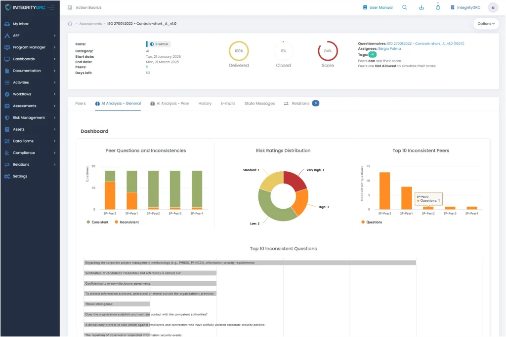 تقدّم IntegrityGRC رؤية موحّدة للمخاطر عبر المؤسسة، من خلال تحديد المخاطر، تقييم مستوى الخطورة، وربطها بتأثيرها الفعلي على الأعمال. تساعد المنصة الإدارة العليا على الانتقال من التعامل مع المخاطر بشكل مجزأ إلى إدارة مؤسسية قائمة على البيانات والتحليل.